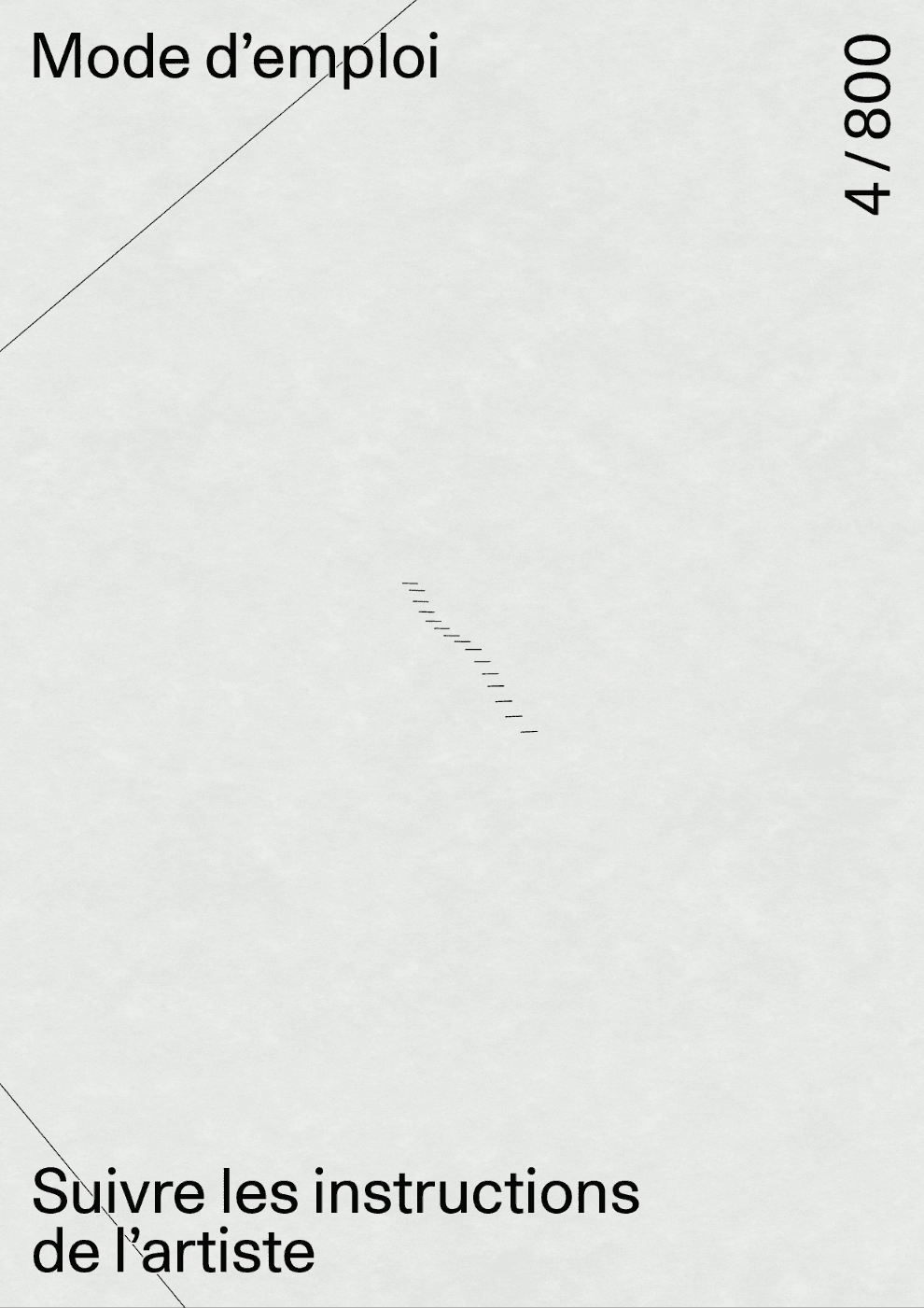 Édité à l’occasion de l’exposition « mode d’emploi – suivre les instructions de l’artiste », cet ouvrage s’intéresse aux œuvres à protocole qui parcourent la création contemporaine des années 1960 à nos jours. Une œuvre à protocole se manifeste à partir d’un énoncé, formulé par l’artiste, qui décrit les conditions de son apparition. À partir de ces instructions (écrites, dessinées ou orales), l’œuvre peut être réalisée par un tiers. Ce mode de création bouleverse la conception de l’œuvre d’art : à partir d’un même protocole, de nombreuses activations de l’œuvre sont possibles, variant dans leur forme au gré de leur lieu d’accueil et des décisions des personnes responsables de leur activation.